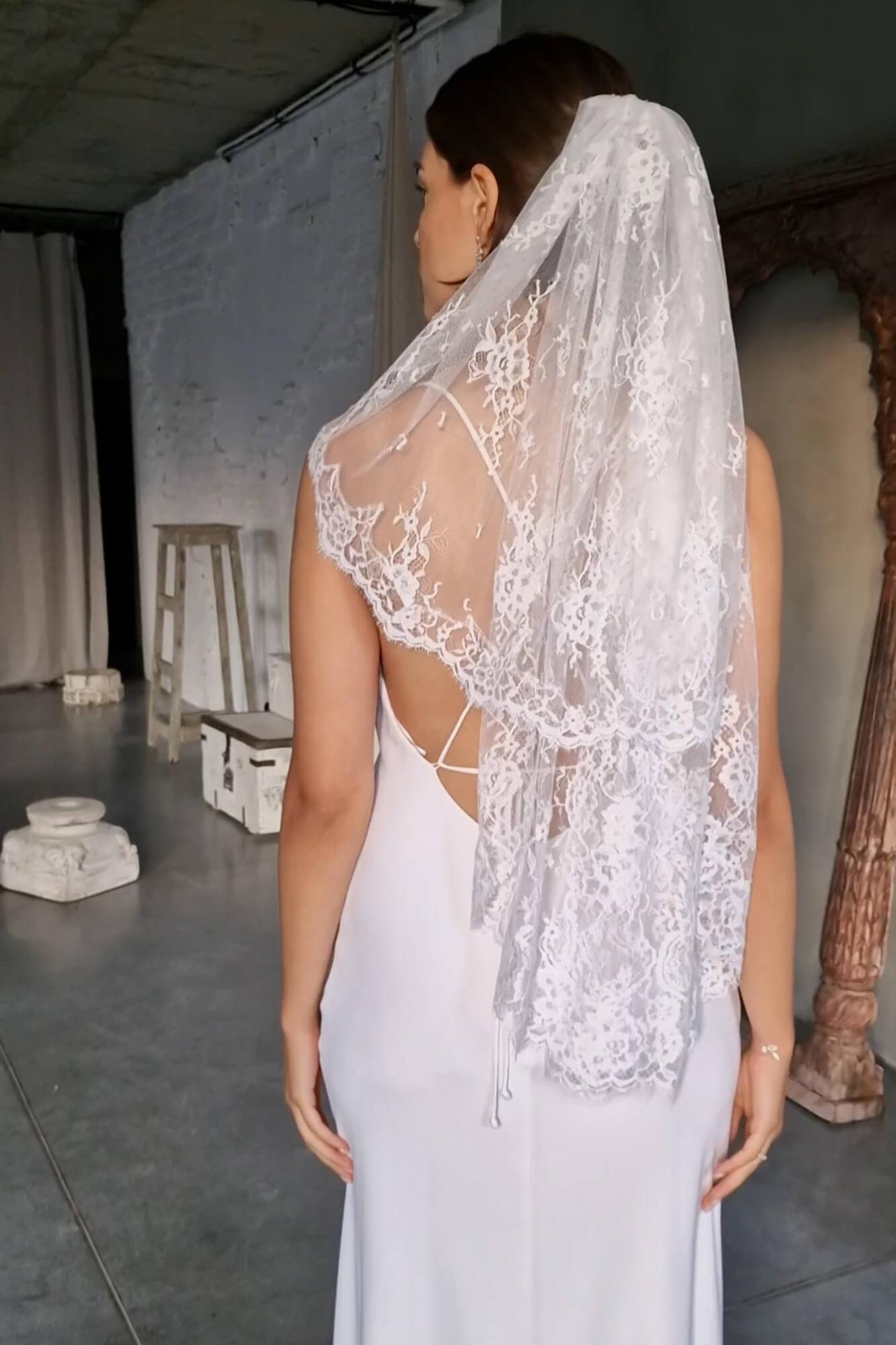 Możesz zarzucić welon na twarz, jeśli zależy Ci na klasycznym efekcie, albo pozostawić go swobodnie opadającego na plecy. Koronka nadaje mu wyraźniejszy charakter, ale nie dominuje sylwetki – to dodatek, który współgra z Twoją suknią, niezależnie od rozmiaru czy fasonu.