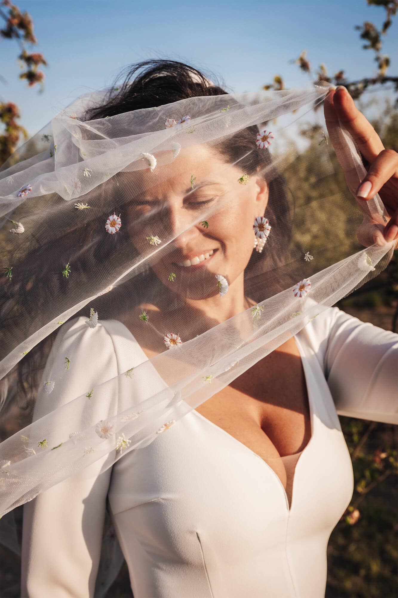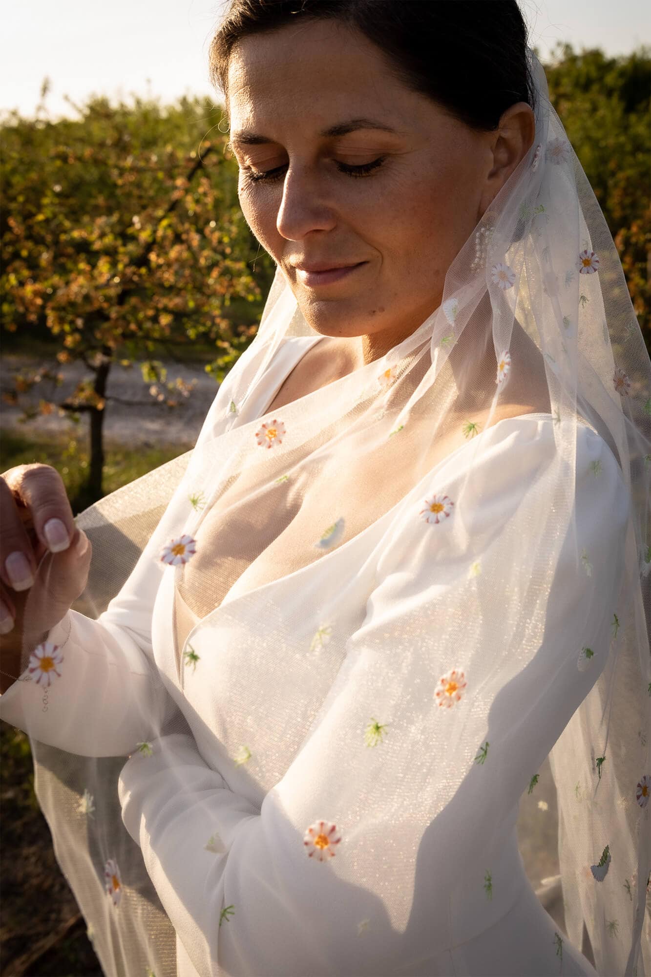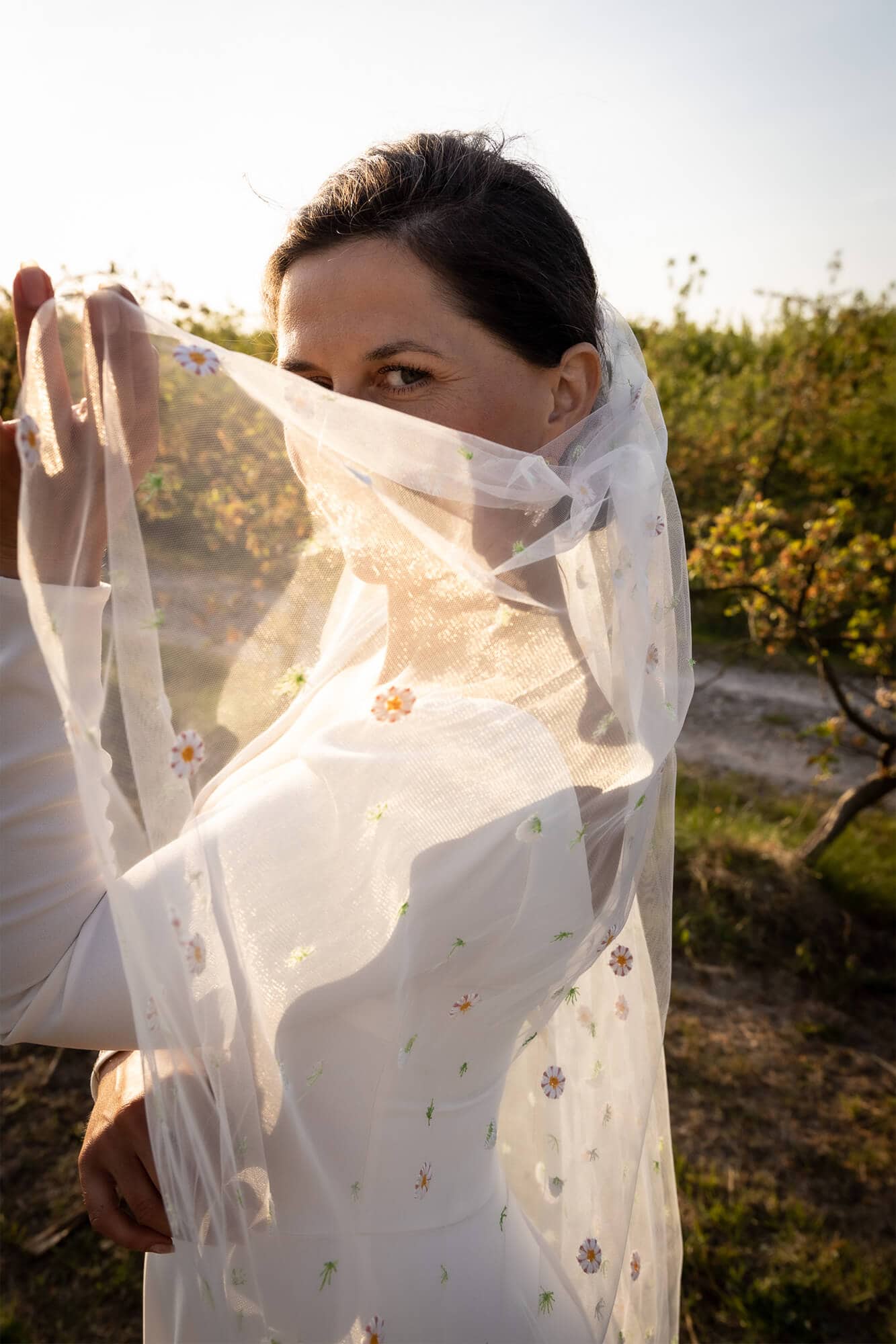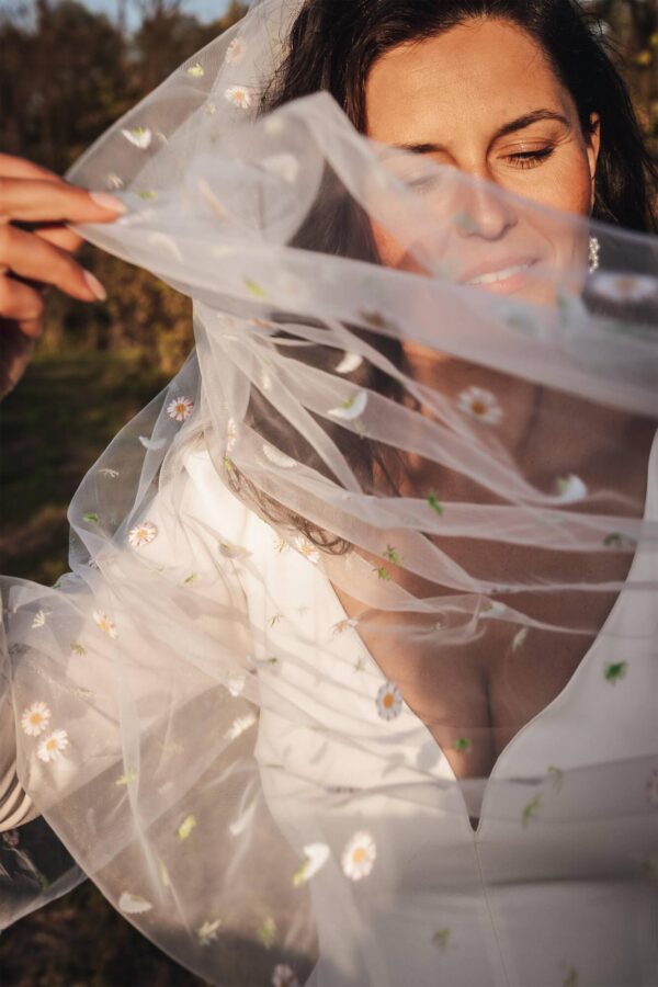 Uroczy welon w stokrotki