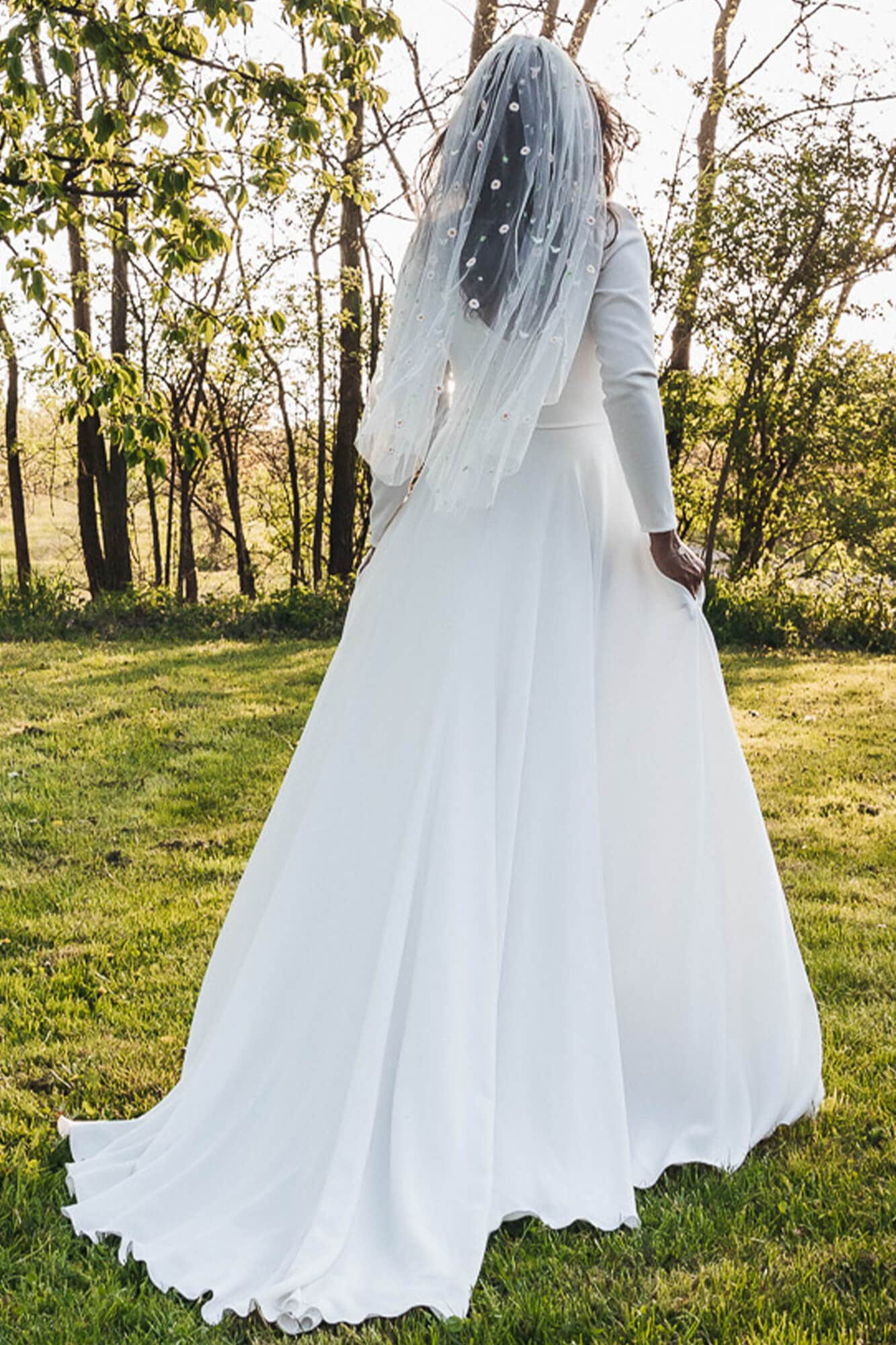 Lekki welon z motywem stokrotek to idealny dodatek dla Panny Młodej planującej ślub w plenerze, stodole lub karczmie. Delikatne kwiaty dodają sukni subtelnego uroku i niepowtarzalnego charakteru. Welon można dopasować do każdej długości – szyjemy go indywidualnie według wymiarów ustalonych z klientką. To prosty sposób, by uzupełnić stylizację i podkreślić romantyczny klimat ceremonii. Dzięki lekkości materiału nie krępuje ruchów i pięknie układa się w trakcie spaceru lub tańca.