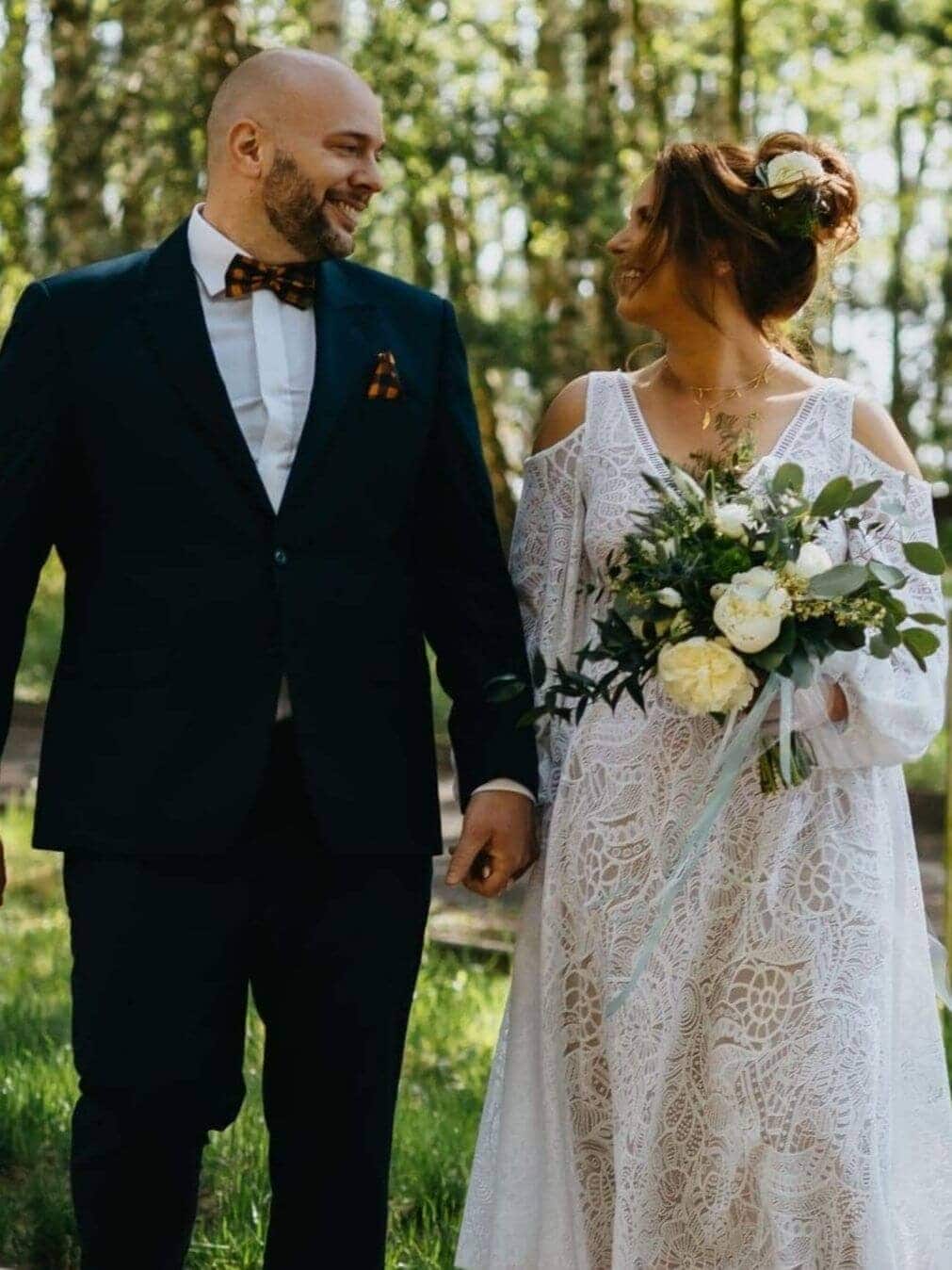 It adapts to the body and moves naturally, ensuring comfort even if your figure changes (including during pregnancy). Most of our lace fabrics are machine washable and resistant to creasing, so the dress can be easily packed for travel or a destination photoshoot.