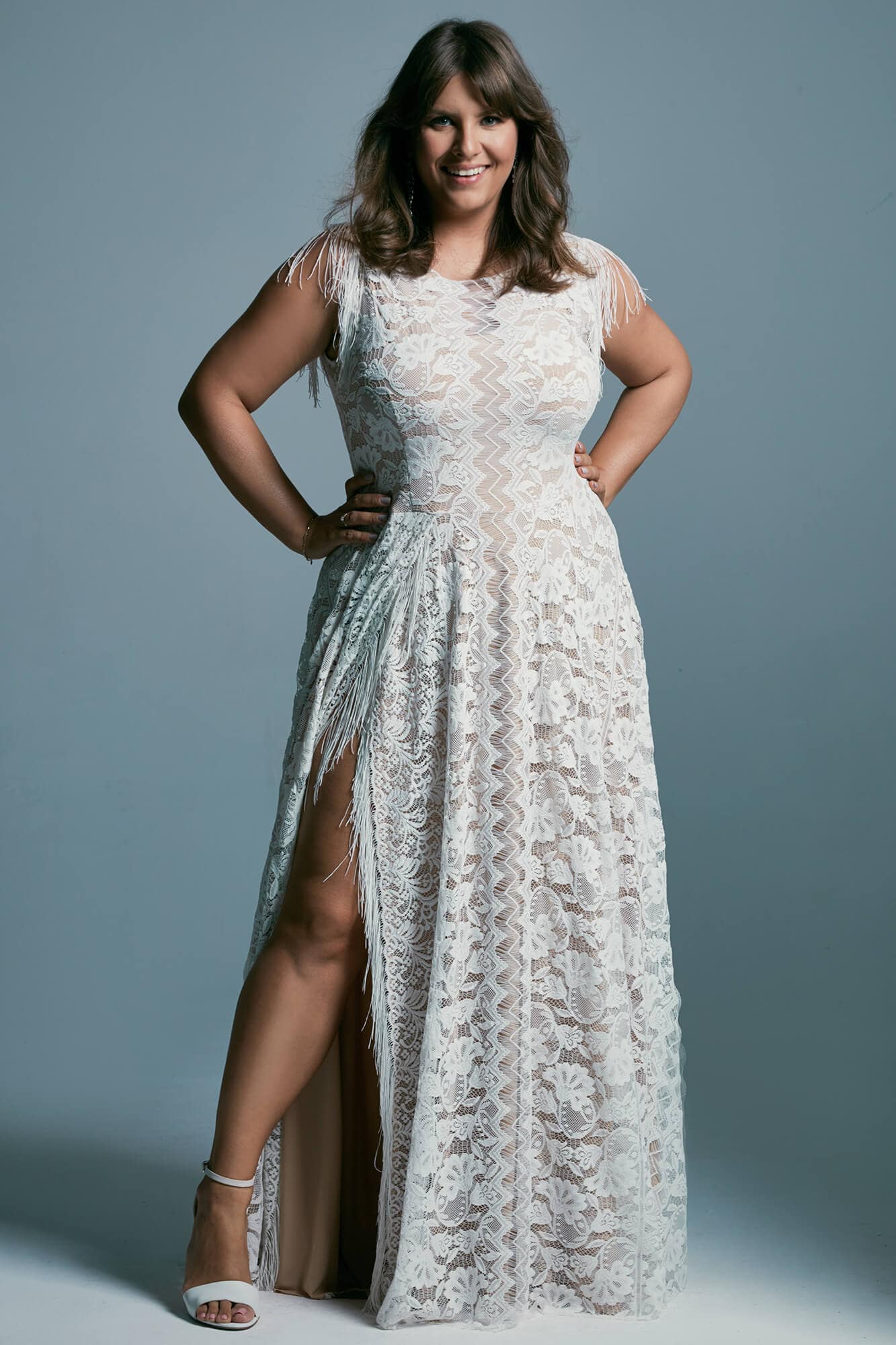 Ten model traktujemy jako punkt wyjścia. Możemy zmienić niemal każdy element: kształt i głębokość dekoltu, wykończenia, falbany czy frędzle. Rękawy mogą mieć inną długość lub formę – albo nie być ich wcale. Regulujemy ilość tiulu w spódnicy, długość i kolor podszewki (biel, beż), a także dodajemy lub usuwamy rozcięcie oraz tren.