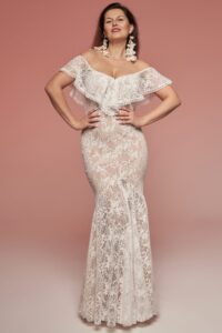 To suknia ślubna plus size, która łączy krój rybki, koronkę i wygodę – w zgodzie z Twoją sylwetką i stylem uroczystości.