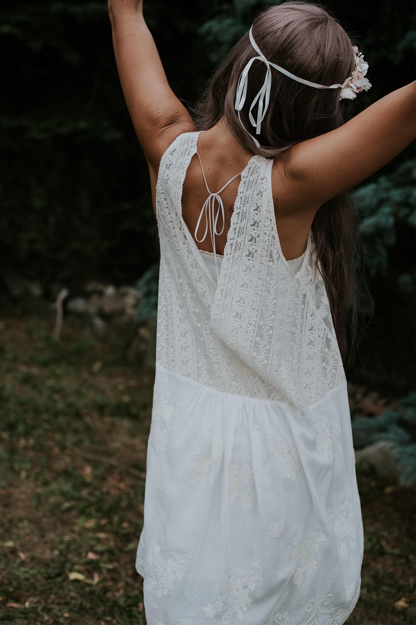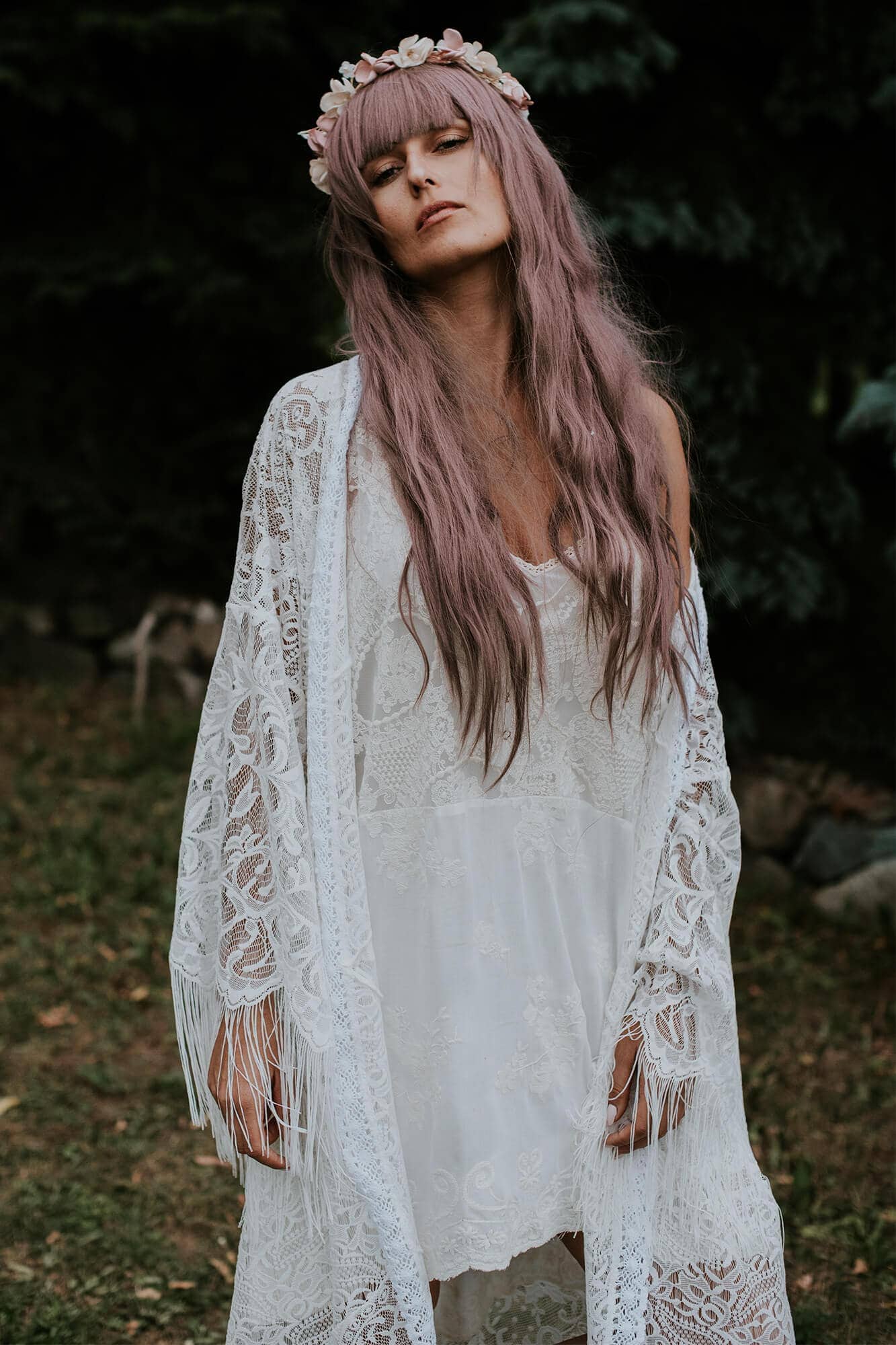 Suknia powstaje ze sprawdzonych materiałów. Koronki są miękkie, lekkie i niedrapiące – nie podrażniają skóry nawet przy wielogodzinnym noszeniu. Dobrze dopasowują się do sylwetki i pracują w ruchu, zapewniając komfort także przy zmieniającej się figurze, w tym w ciąży. Większość z nich można prać w pralce; nie gniotą się, więc suknię bez trudu spakujesz do walizki na sesję poślubną.
