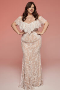 Model dostępny jest również w rozmiarze Plus Size i można go przymierzyć w atelier. Warto pamiętać, że ilość tej koronki jest ograniczona.