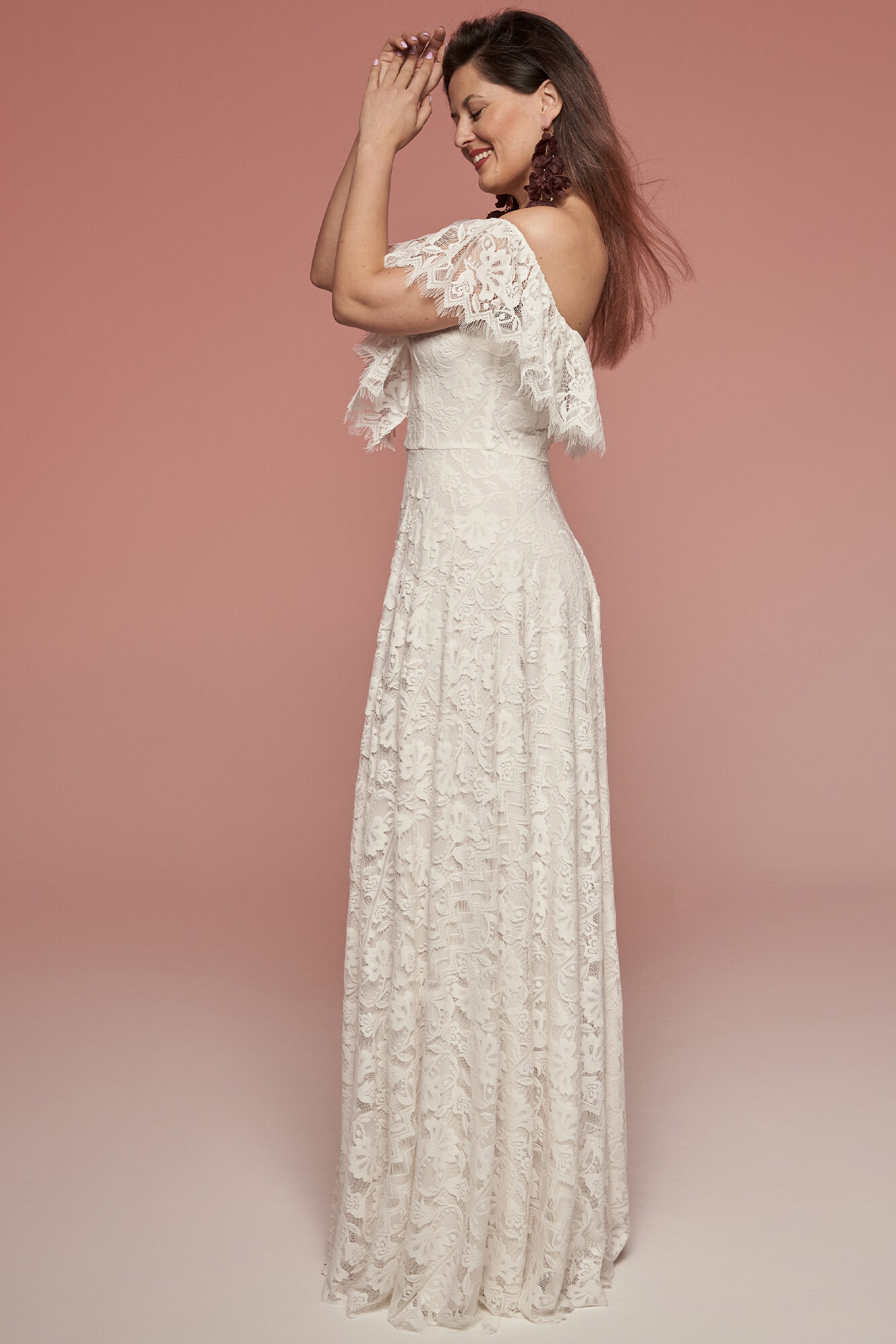 To suknia ślubna, która łączy koronkę, odkryte ramiona i wygodę – w zgodzie z Twoją sylwetką i stylem uroczystości.